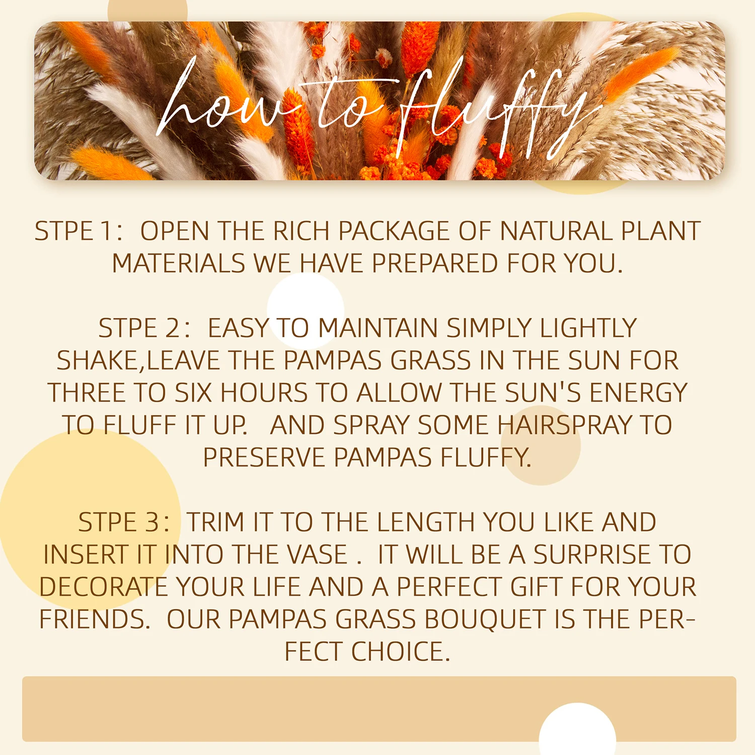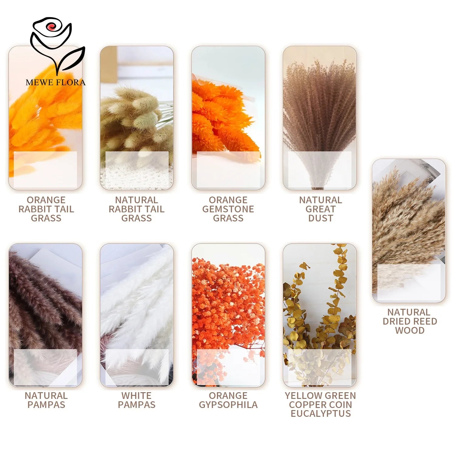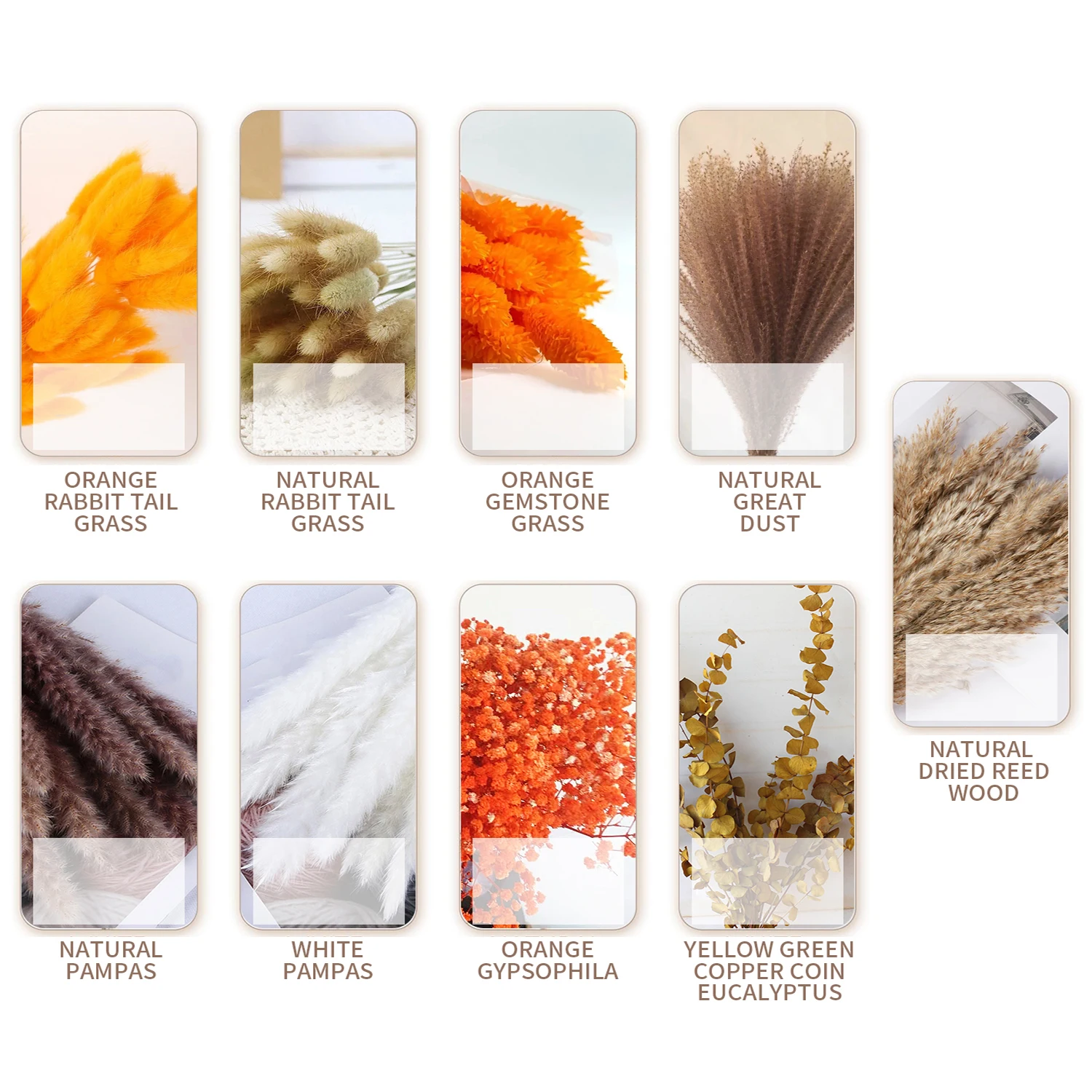 View compareDried Natural Flowers Pampas Bouquet Sets Autumn Decorative Orange Gypsophila Rabbit Tail Grass Rustic Chic Home Decor for Vase