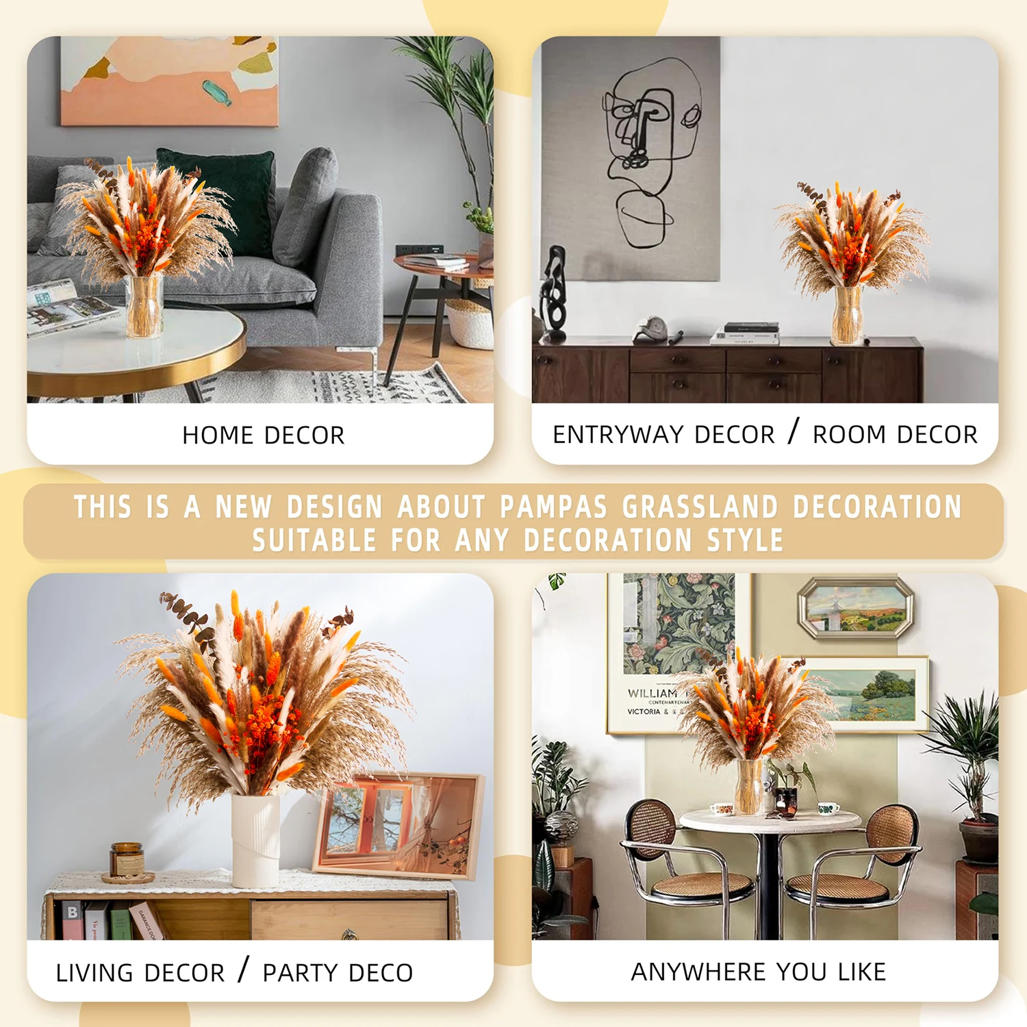 Dried Natural Flowers Pampas Bouquet Sets Autumn Decorative Orange Gypsophila Rabbit Tail Grass Rustic Chic Home Decor for Vase